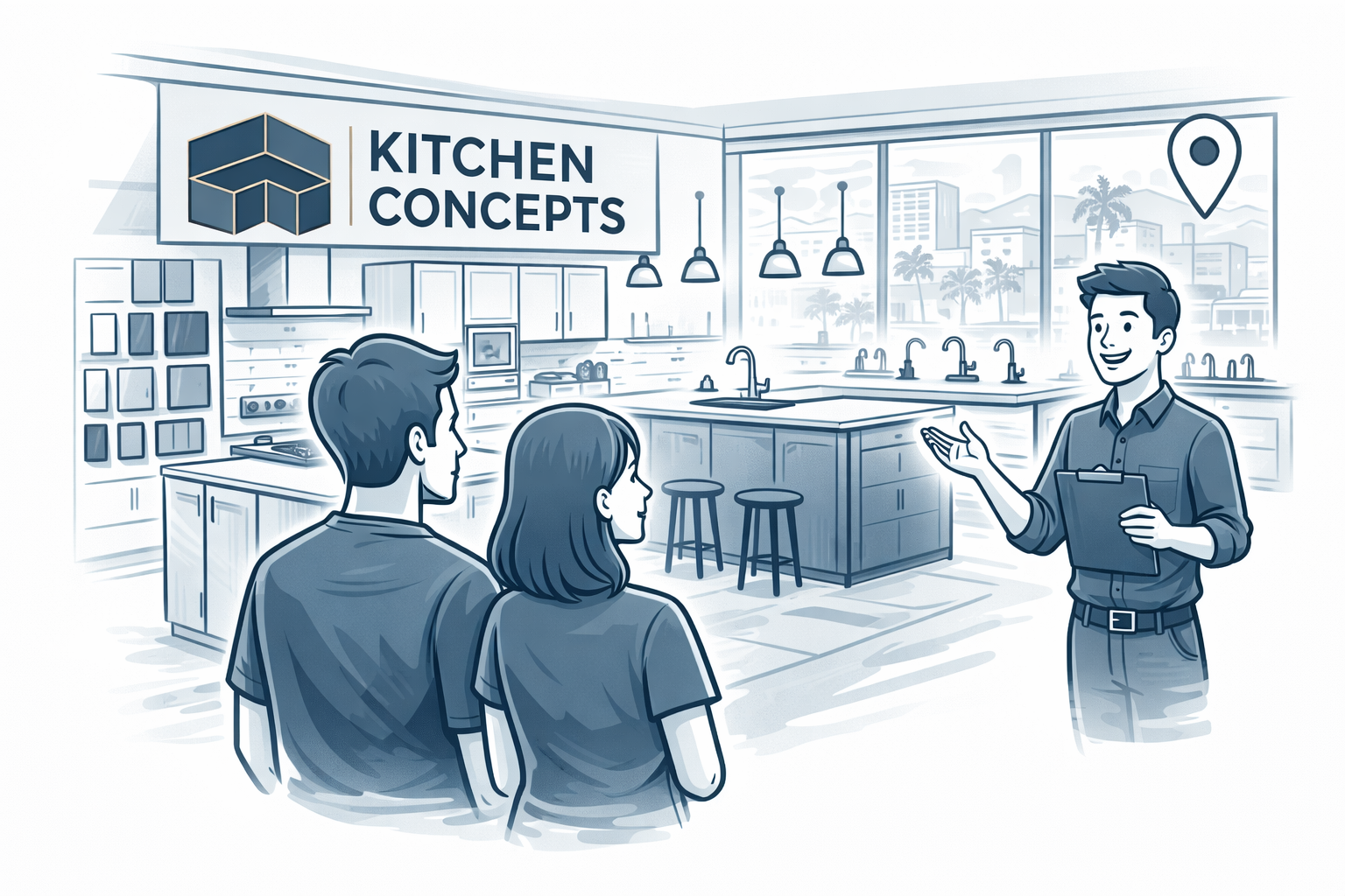 Visit our San Jose showroom to select from our collection of cabinets, countertops, backsplash and flooring.